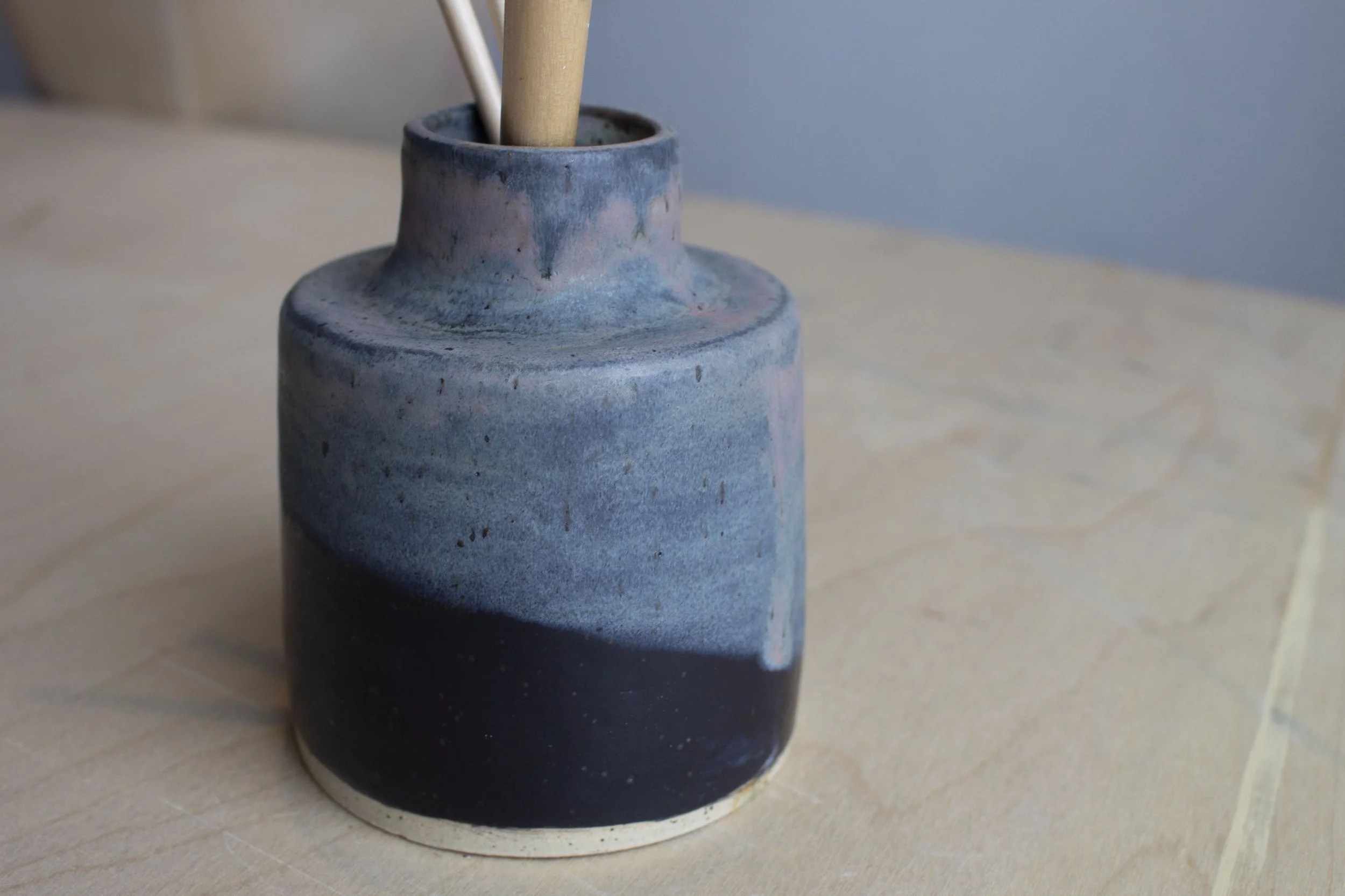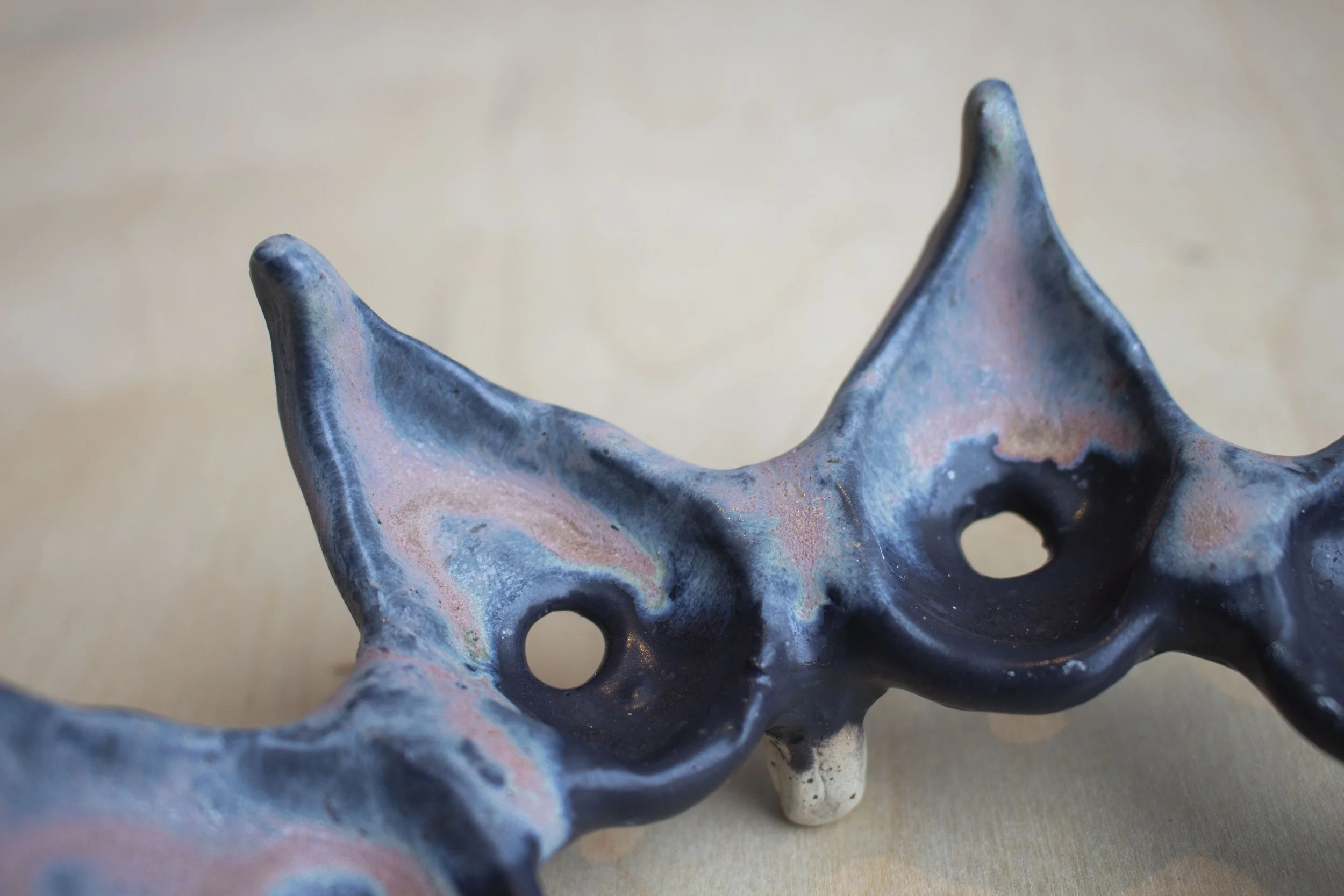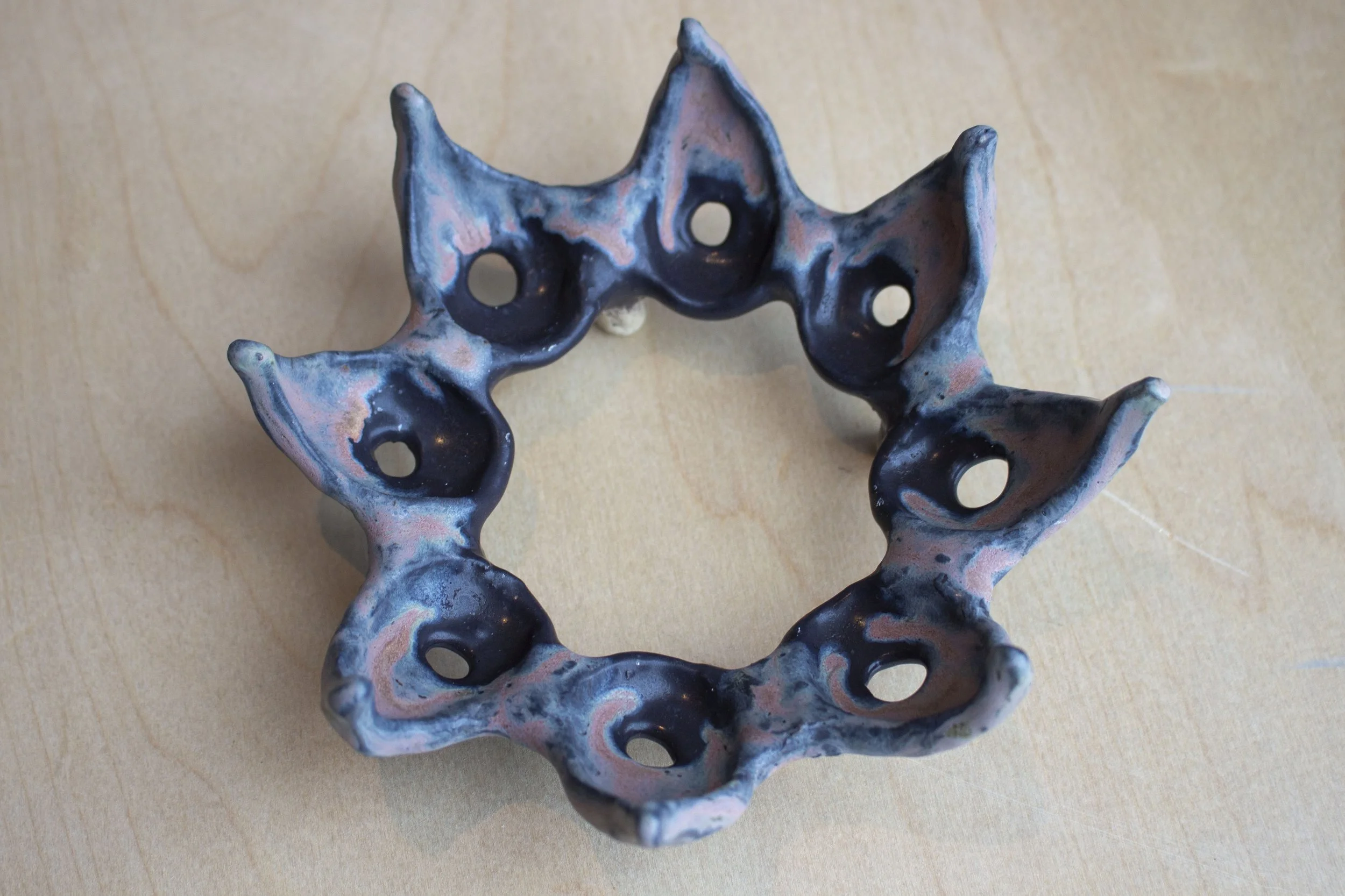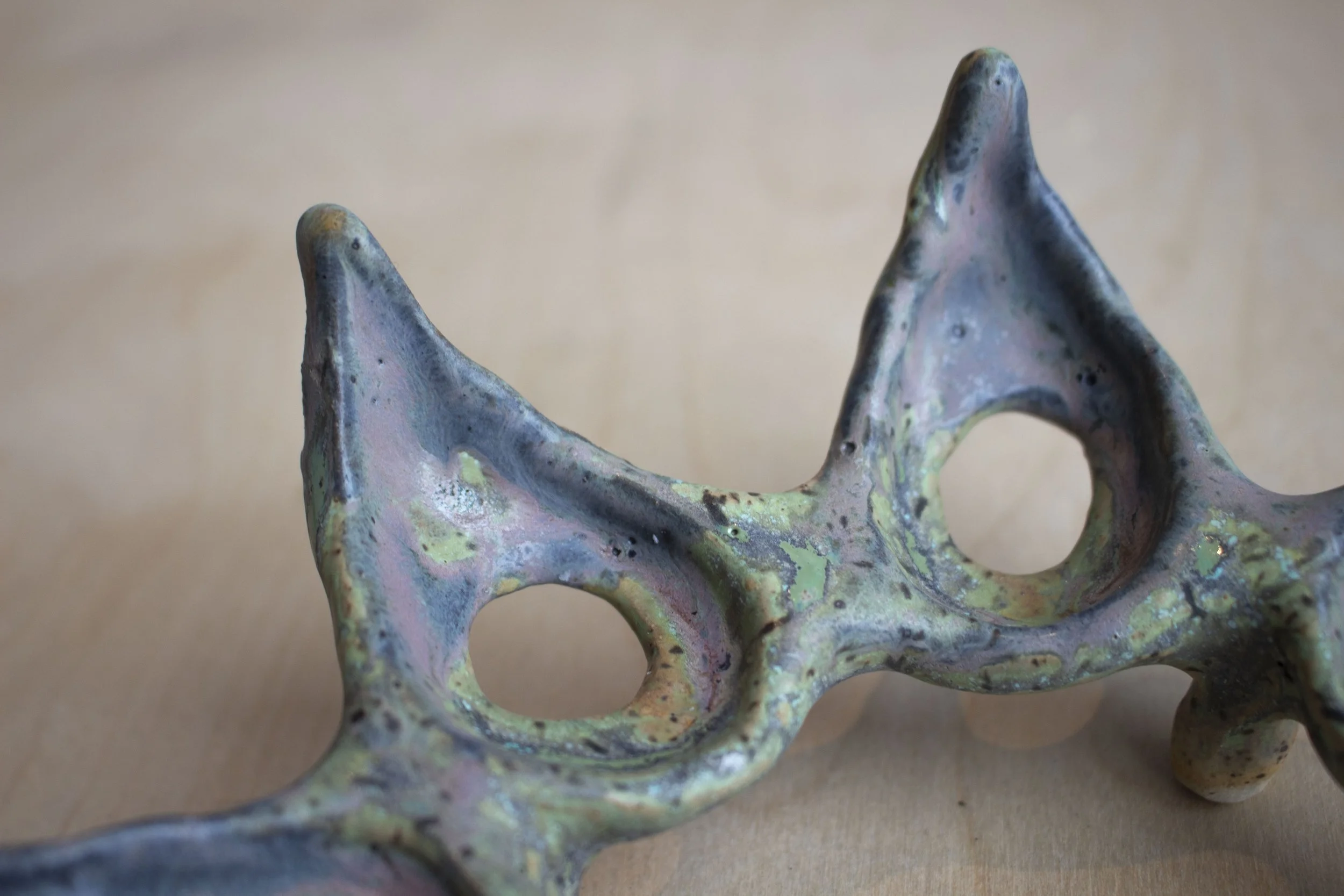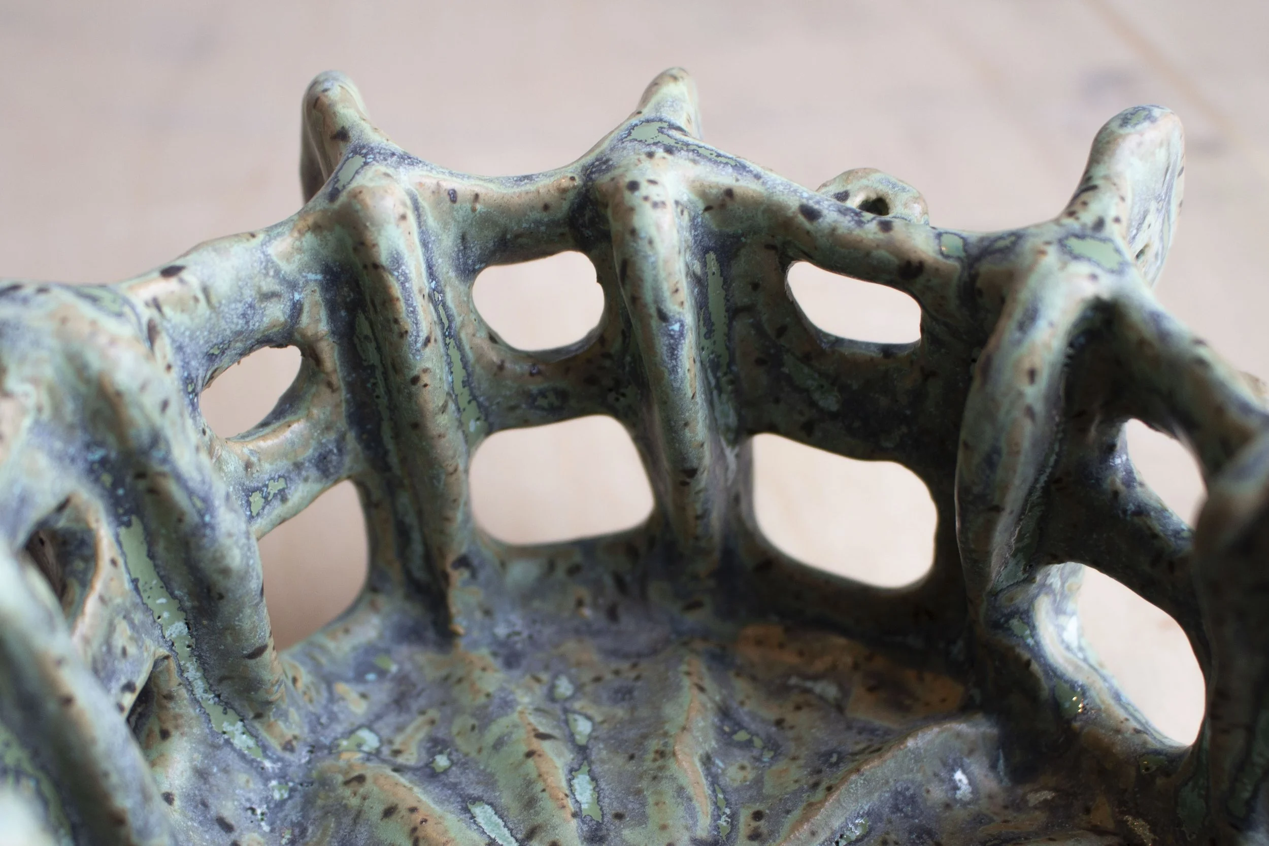 Shannon’s ceramic work explores the skelatal qualities of thrown and pinched clay. Her wares are reminicent of the rocks, bones, and lichen coated dishware that wash ashore harbours and beaches the artist explored growing up (and still now).